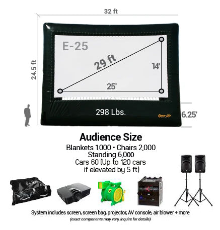 Entertain thousands of your community members with a state-of-the-art, giant, Open Air Cinema Elite outdoor movie audiovisual system.